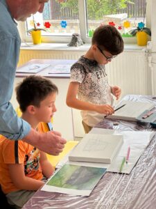 Prin fiecare șevalet și fiecare nuanță, copiii nu numai că se inițiază în arta picturii, dar și se apropie mai mult de comunitatea lor locală, redând cu fiecare detaliu esența și frumusețea locurilor pe care le iubesc. Astfel, atelierul de pictură devine un spațiu în care micuții artiști își dezvoltă nu doar abilități artistice, ci și o legătură puternică cu frumusețile naturii din jurul lor, sub îndrumarea inspirată a domnului Radu Macavei.